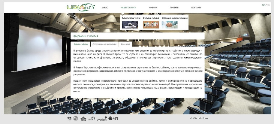V Consulting реализира успешно проект по изработването на нов корпоративен уебсайт за туристическа агенция Лидия Турс. С оригиналния си графичен дизайн и многобройни функционалности сайтът представя услугите и постиженията на фирмата в сферата на корпоративното обслужване и B2B възможностите, които предлага.