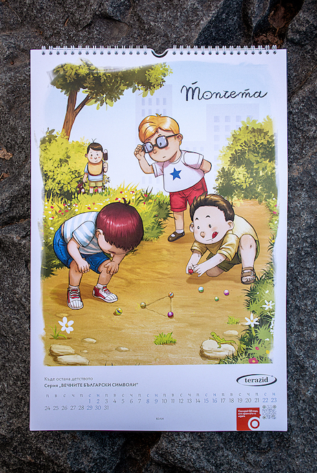 Споменът за щурите игри, които всеки е играл като дете, смехът и споровете с приятелите ни подмладяват и винаги будят позитивни емоции. Това беше търсеният ефект при създаването на календара на ТЕРАЗИД за 2023 г. с илюстрации от любимите детски игри на тема „Къде остана детството“. За да завършим картината и насочим посетители към сайта на ТЕРАЗИД, правилата на всяка от игрите бяха качени на сайта, лесно достъпни с QR код.