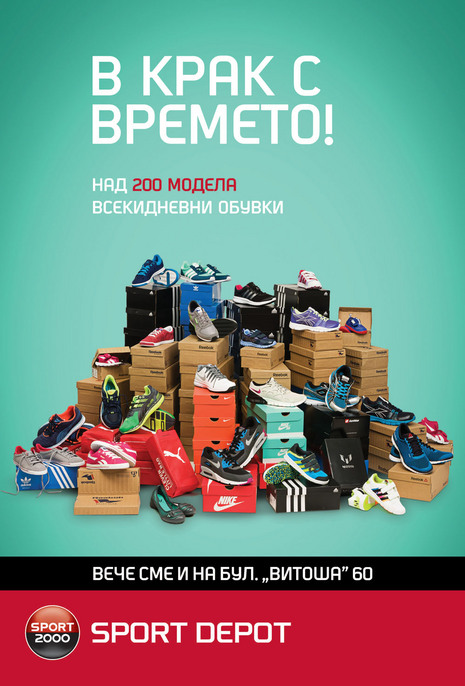 Заедно с това графичният отдел на V Consultingсъздаде над 250 рекламни визии, както и креативния дизайн на пет сезонни брошури. През годината също така се погрижихме за цялостното брандиране на търговските обекти на веригата, включително и за трите нови магазина, които Sport Depotоткри в България.