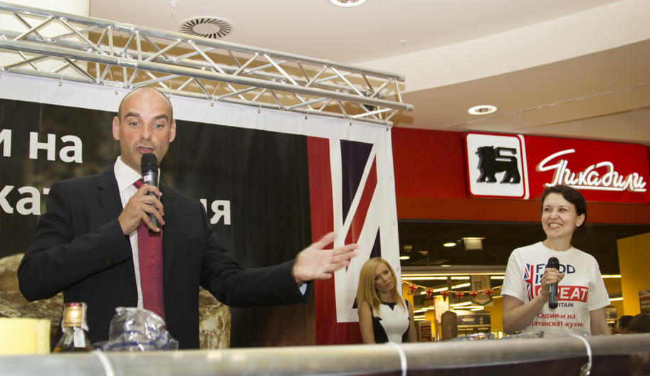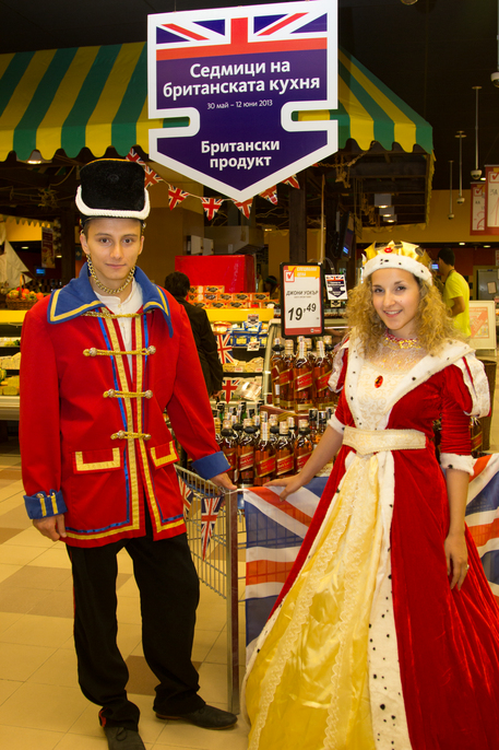 Промоутъри в ролята на „английската кралица” и „гвардеец от британската армия” подканваха посетителите на Сердика Център да се присъединят към демонстрацията, за да се насладят на уменията на британския готвач.