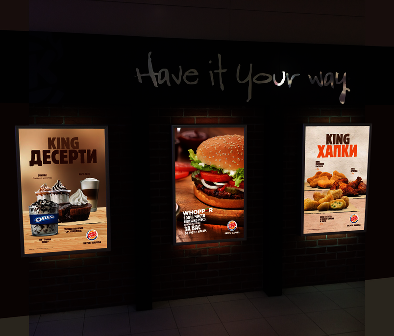 Ве Консултинг изработи концепции и рекламни материали с цел промотиране на нови Бъргър Кинг менюта, лансирани на територията на България, Чехия...