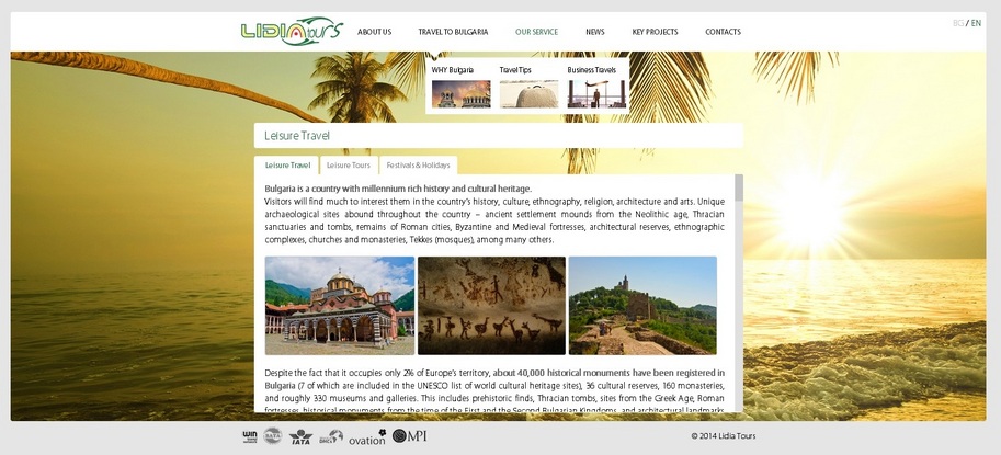 V Consulting реализира успешно проект по изработването на нов корпоративен уебсайт за туристическа агенция Лидия Турс. С оригиналния си графичен дизайн и многобройни функционалности сайтът представя услугите и постиженията на фирмата в сферата на корпоративното обслужване и B2B възможностите, които предлага.