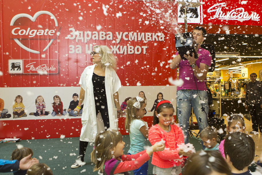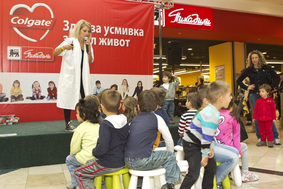 Официалното откриване на „Здрава усмивка за цял живот” беше отбелязано със забавно аниматорско шоу за деца, което се проведе в супермаркет Пикадили, Сердика Център. Професионални актьори, маскирани с интересни костюми, отведоха децата в „Приказната страна зъбчетата” и чрез атрактивни игри и танци им показаха колко важно е да се грижат за устната хигиена.