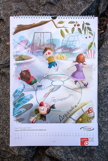 Споменът за щурите игри, които всеки е играл като дете, смехът и споровете с приятелите ни подмладяват и винаги будят позитивни емоции. Това беше търсеният ефект при създаването на календара на ТЕРАЗИД за 2023 г. с илюстрации от любимите детски игри на тема „Къде остана детството“. За да завършим картината и насочим посетители към сайта на ТЕРАЗИД, правилата на всяка от игрите бяха качени на сайта, лесно достъпни с QR код.
