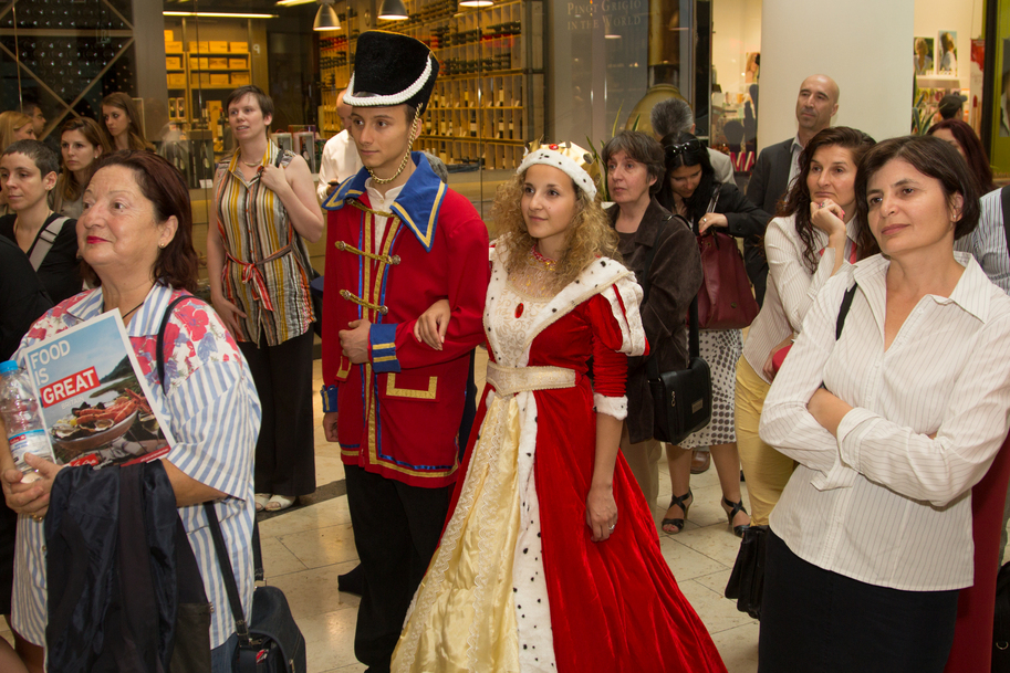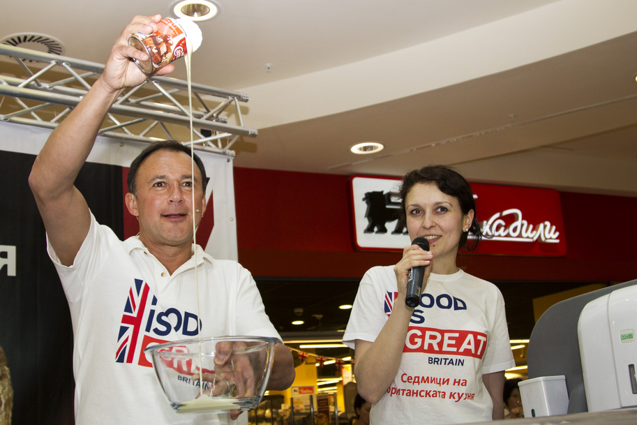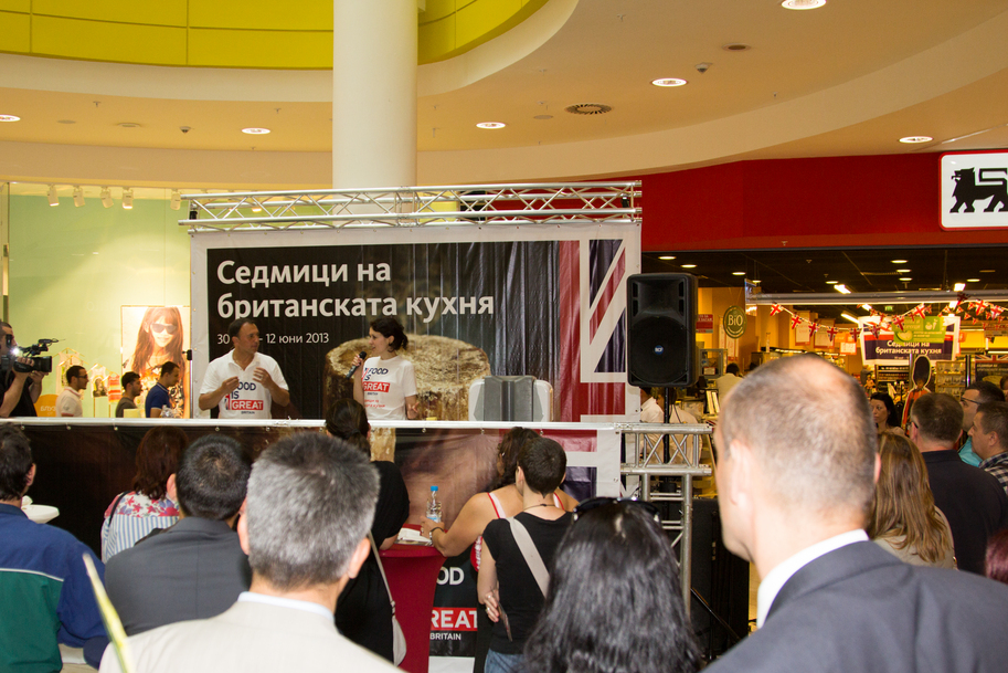 Промоутъри в ролята на „английската кралица” и „гвардеец от британската армия” подканваха посетителите на Сердика Център да се присъединят към демонстрацията, за да се насладят на уменията на британския готвач.