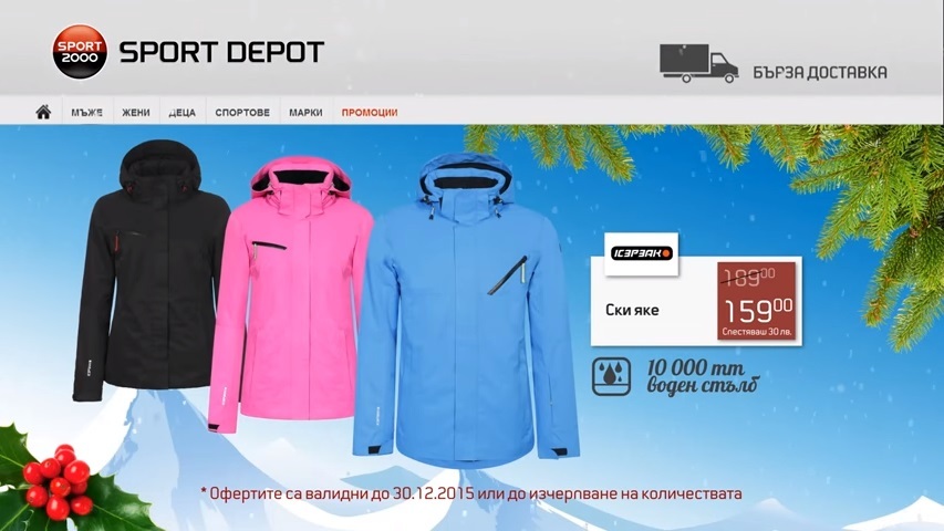 За поредна година лидерът в продажба на спортни стоки и аксесоари СПОРТ ДЕПО се довери на екипа на Ве Консултинг за изработване на телевизионна реклама на новата зимна кампания на марката. През декември компанията предлага на своите клиенти огромен избор от стоки за зимни спортове, хиляди идеи за подаръци и изобилие от изгодни оферти. Видеото може да видите
