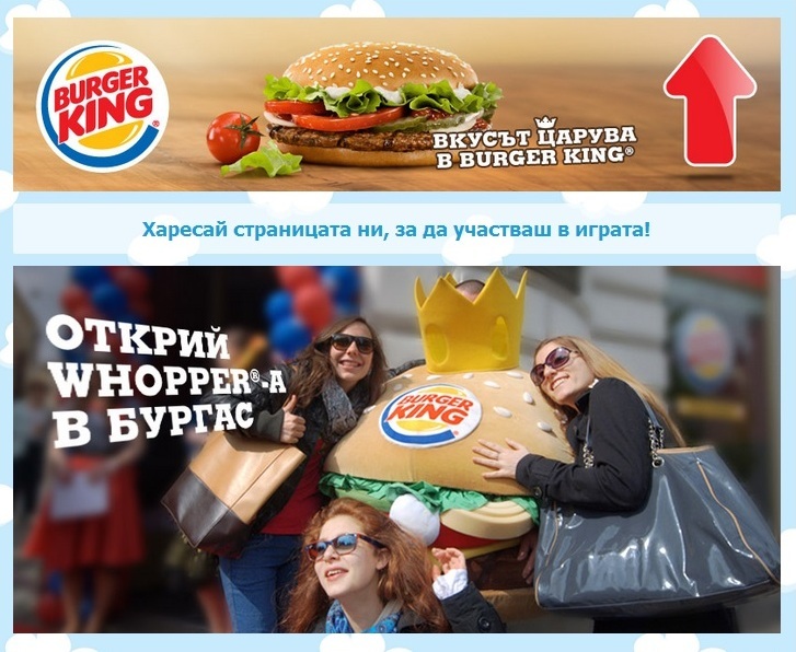 - набиране на фенска маса от Бургас за BURGER KING® във фейсбук;