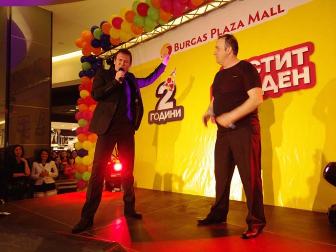Двама от най-обичаните български комедийни актьори – Краси Радков и Виктор Калев – направиха двучасово шоу по случай втория рожден ден на Бургас Плаза Мол. Те забавляваха многобройната публика, като се превъплътиха в познатите на всички Гацо Бацов, Шишо Бакшишо, Хулиган Кучков, Деса Поетеса, Галка Малка от Кариеризма и т.н. Празникът се разгърна и във виртуалната реалност, при това с небивал успех. Фейсбук кампанията, във връзка с годишнината на Бургас Плаза мол, събра за броени часове над 2 500 фена, така че общия брой на почитателите достигна 4 000 души. Самата кампания и събитието бяха организирани от екипа на V Consulting.